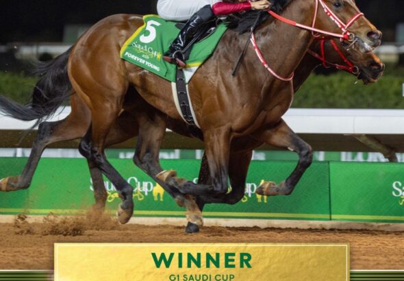 SKIPPYLONGSTOCKING, hijo de EXAGERATTOR, sorprendió en su cuarto intento en la Pegasus World Cup para lograr su...