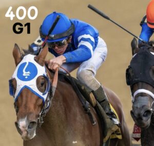 CODY’S WISH imbatible mantuvo su invicto en milla de 7-7 con una victoria impresionante el sábado en el Metropolitan Handicap G1 patrocinado por Hill N´Dale el haras donde esta de semental su padre CURLIN. En la curva ya los tenía listos con el Junior Alvarado, la preparación de Bill Mott, para continuar su noble historia con el jovencito Cody Dorman. Con su triunfo el Godolphin inicio el camino hacia sus 500 G1. Ahora tiene de 13-9, 1 segundo y 3 terceros, incluyendo uno en el debut con el Junior quien después no lo montó mas hasta que inicio la racha que mantiene con 6 primeros consecutivos