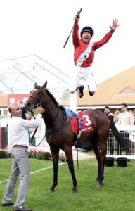 En la continuación del año de su anunciado retiro, Frankie Dettori sigue cosechando éxitos. Ahora logró su triunfo número 500 en el hipódromo inglés Newmarket al imponer a la campeona INSPIRAL pupila de John y Thady Gosden, hija de FRANKEL, que le ha dado grandes satisfacciones, en el Sun Chariot Stakes G1 el sábado en milla. Yegua que tiene de 12-8, de 11-7 con él, quien la ha conducido desde su segunda actuación luego que debutara ganando