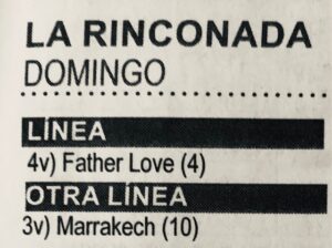 En MUNDO HIPICO nos ganaron las dos LINEAS en Valencia: OPTIMUS BACK y RODDRICK y en La Rinconada: FATHER LOVE y MARRAKECH